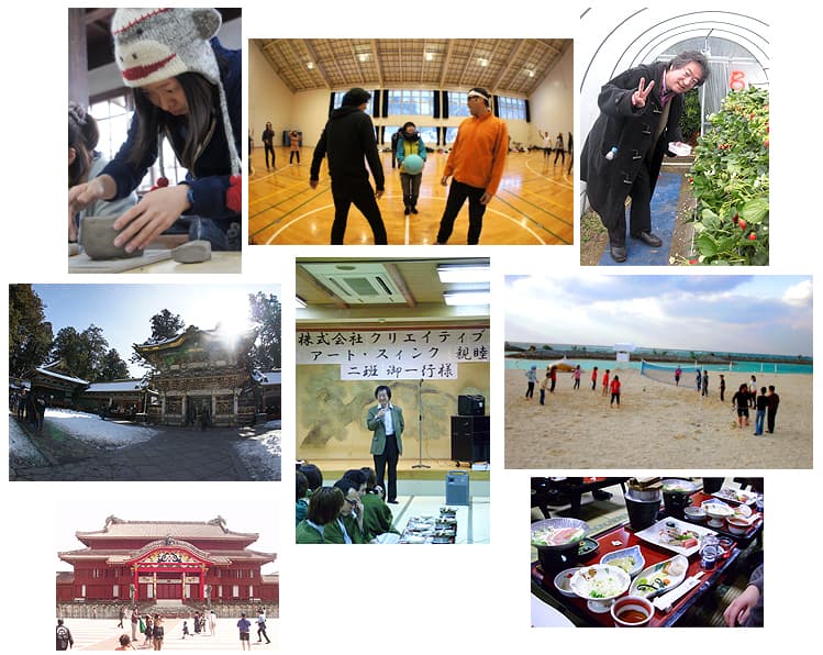 社員旅行では各地の観光スポットを巡ったり、いちご狩りや陶芸体験、ビーチバレーやドッジボールなど