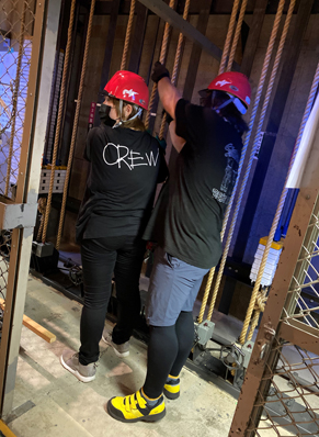 実際に手引きの劇場で綱元操作を先輩社員から教わります。